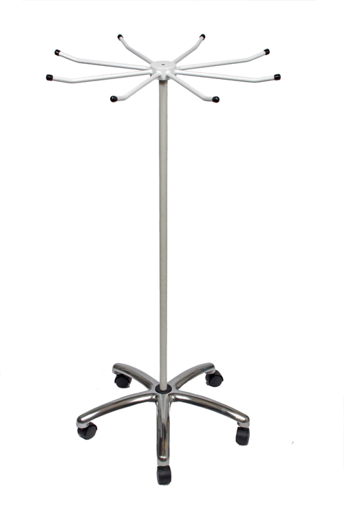 An 8-arm mobile rack that holds up to 8 frontal or wrap-around lead aprons. The circulating design allows easy access to aprons while taking up minimal space.